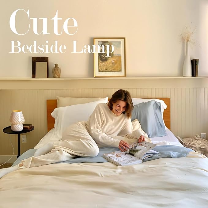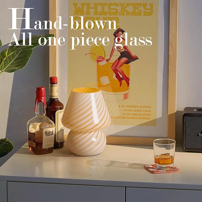 - 【Unique Hand-Blown Bedside Lamp】Made from glass with a timeless silhouette. The glass technique of this nightstand lamp is a result of a handmade process, making every ONEWISH little lamp unique. Even when switched off, ONEWISH mushroom decor is an eyecatcher.
