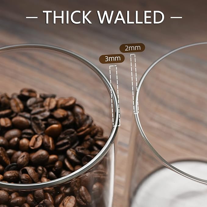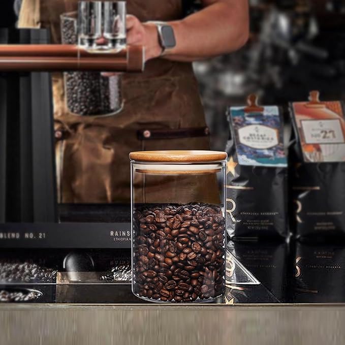 - Large Glass Containers: Large glass jars with bamboo lids have the large capacity, can hold up flour, sugar, rice, also great for cereals, coffee beans, oats, candy, etc.