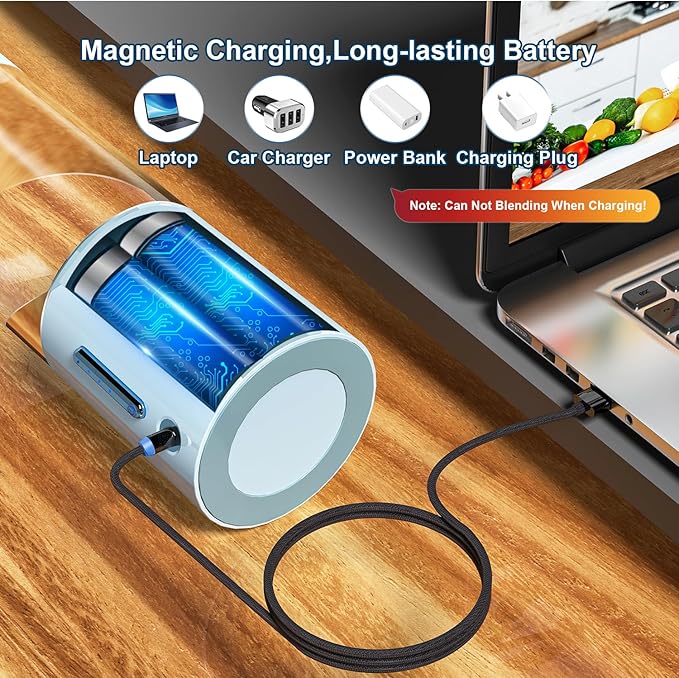 - 【Upgraded Magnetic Charging】This personal blender boasts a unique USB-magnetic charging interface, providing fast charging and enhanced waterproofing. With a built-in 4000mAh rechargeable battery, a 2-3 hour initial charge is recommended before use.