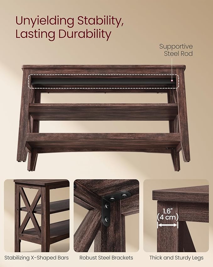 VASAGLE, Entryway Storage Bench, 2-Tier Shoe Rack, 11.8 x 31.5 x 18.9 Inches, Holds up to 300 lb, Farmhouse Style, for Living Room, Bedroom, Maroon Brown ULSB053K51