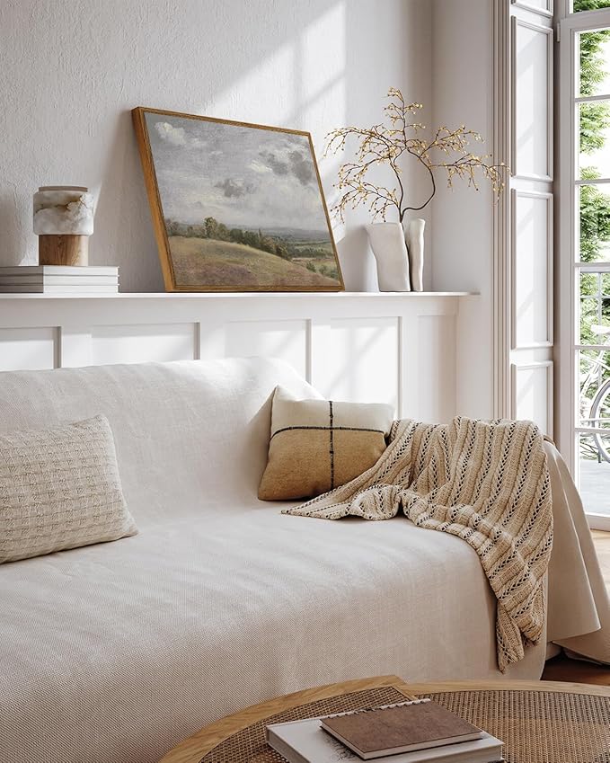 InSimSea Framed Canvas Wall Art, Vintage Decor - Landscape Wall Painting Prints, Rolling Hills Pictures for Bedroom, Farmhouse Bathroom, Office Dining Room Decor - 12"x16"