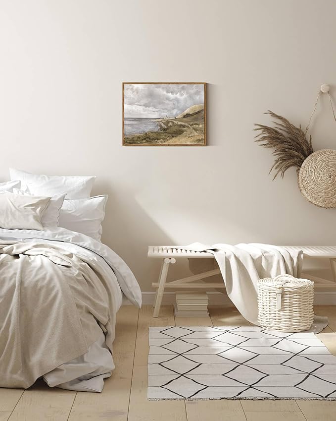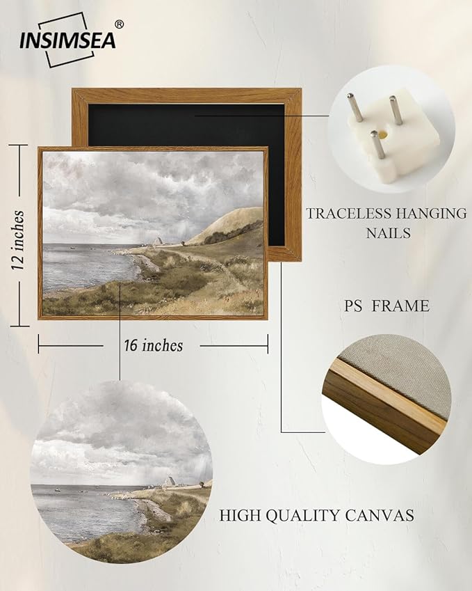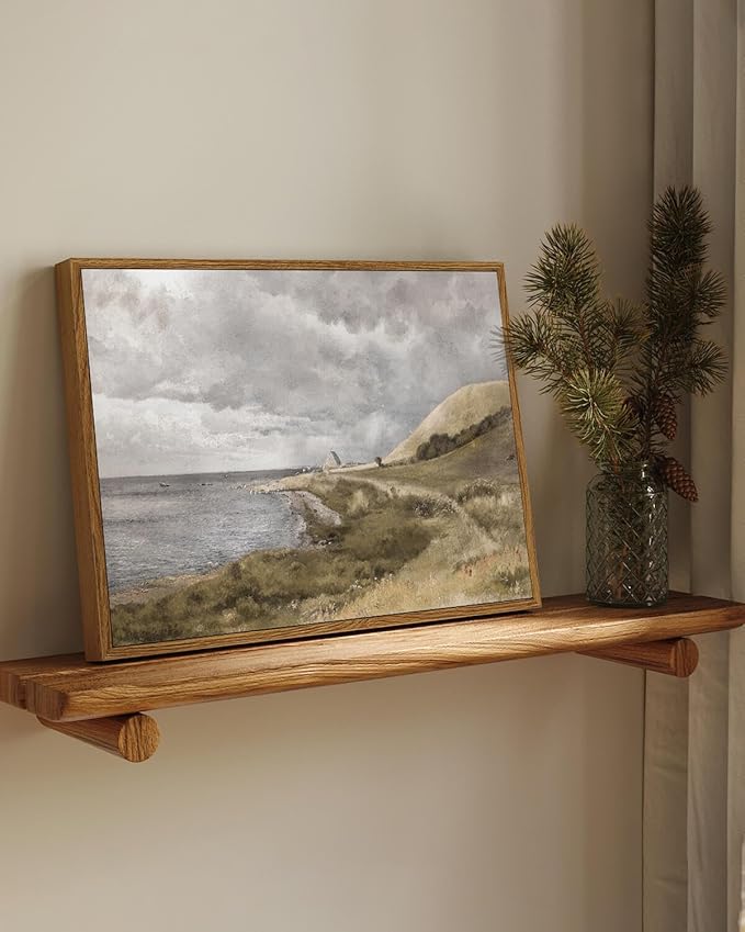 InSimSea Framed Canvas Wall Art Vintage Decor, Coastal Wall Art Danish Coast Nature Scenic Art for Bedroom, Wall Paintings, Farmhouse Office Bathroom Wall Decorations, 12"x16"