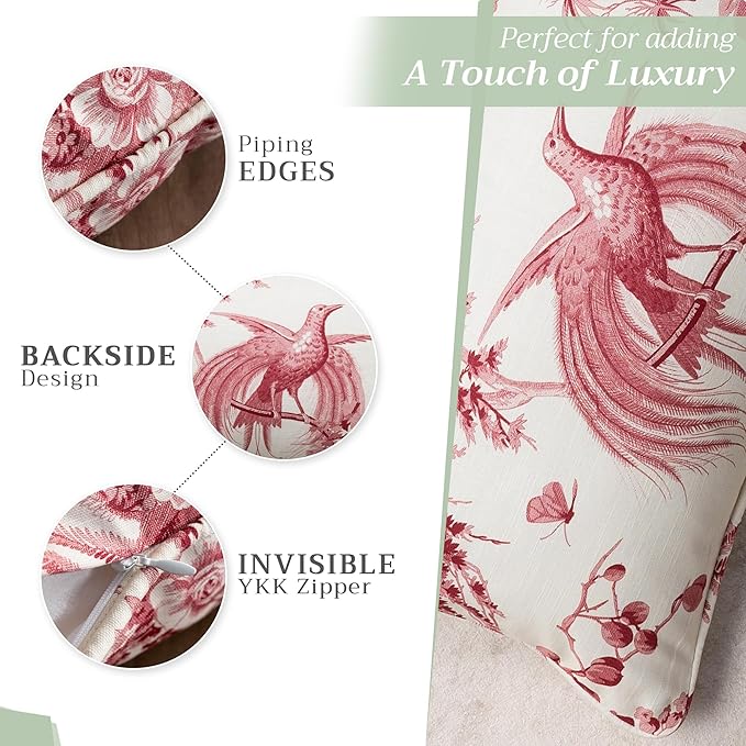 - Easy care & maintenance: Machine wash warm with like colors, do not bleach, tumble dry low, and warm iron if needed. Durable and washable, this 18x18 Toile throw pillow cover maintains its charm through everyday use