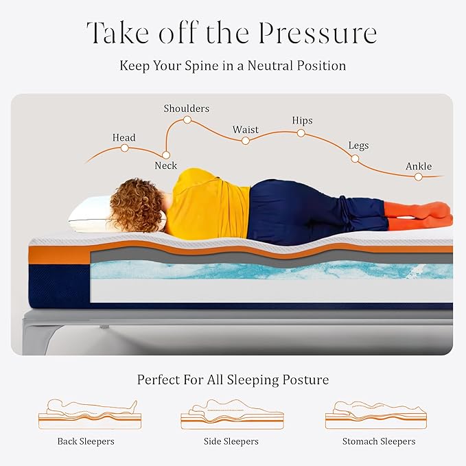 - 【Medium Firm for Pressure Relief】Medium firmness is designed for every type of sleeper, conforming to every curve, whether you're a side sleeper, back sleeper, stomach sleeper, or someone who frequently tosses and turns. It is the ideal choice for those seeking a balance of support and pressure relief.