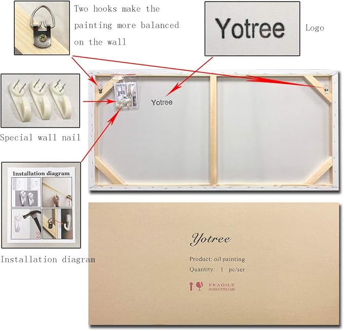 - Canvas painting with interior frames,Metal hooks are installed on the frame to facilitate suspension.