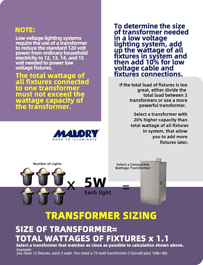 - LIFETIME WARRANTY:MALORY landscape lighting are built to the highest standards of construction and performance, we extends an industry-best lifetime warranty on its brass fixtures and 50,000 hrs for the LED bulbs.Please contact us if you have any issue, we will offer top rated customer service for you.