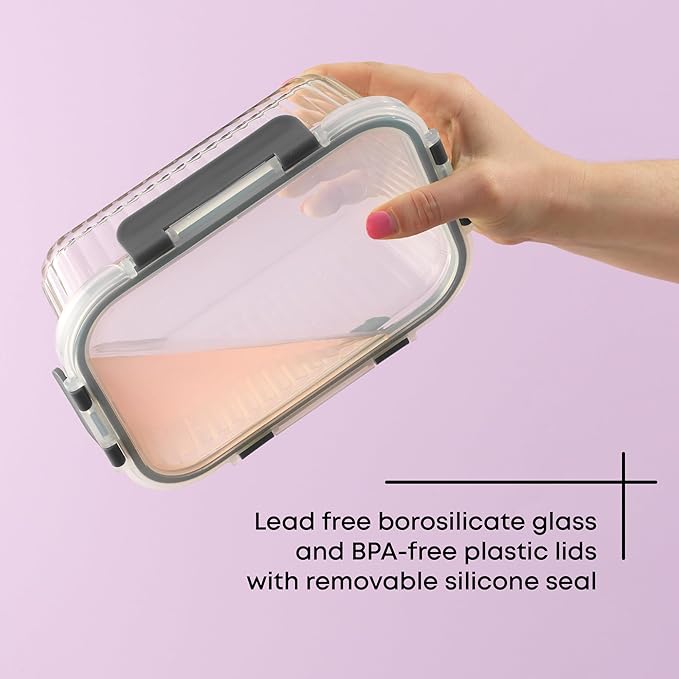 - AIRTIGHT FRESHNESS: These airtight containers feature a removable silicone seal and secure hinge clips, so you can use them as a food container without odors or air getting in or out! They're also leakproof glass lunch containers, so fill them as soup containers in your lunch bag without fear!