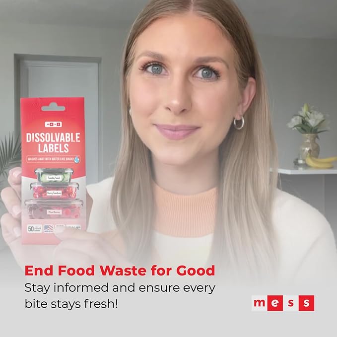 MESS Dissolvable Food Labels, Blank 1x2, 50/Roll - Dissolves in 30 Seconds or Less - Removable Pantry, Meal Prep & Food Storage Labels – Canning & Freezer Use