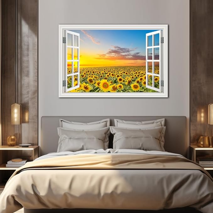 - Canvas Size:32"x48"(80cmx120cm), fake window view sunflower canvas wall art for home decoration