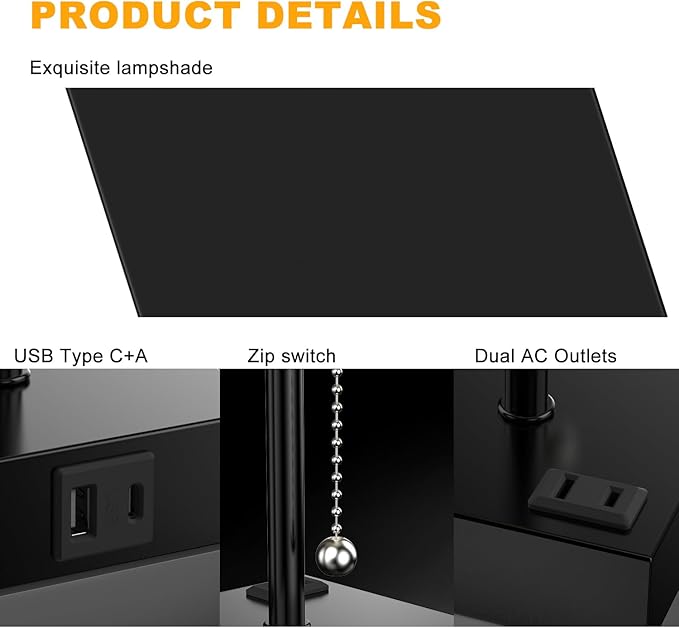 - 【USB+Type-C and AC Outlet Charging Ports】 :The bedroom lamps for nightstand set of 2 are equipped with USB port, Type-C and a 2-prong AC outlet, which can stably maintain 5V 2.1A output, make your phone, tablet, humidifier, kindle, headsets and other electronic devices are charged whether the nightstand lamps set of 2 are on or off