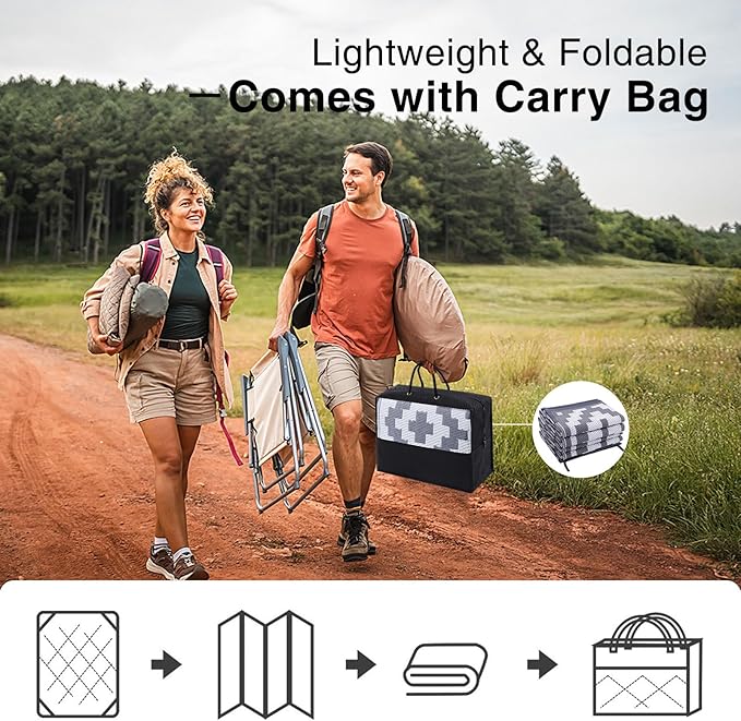 - Lightweight & Portable: Designed for ultimate portability, this lightweight camping rug is easy to fold and carry, making it the perfect companion for camping, picnics, and other outdoor adventures. Take it along to your next outdoor event without the hassle of heavy or bulky mats.
