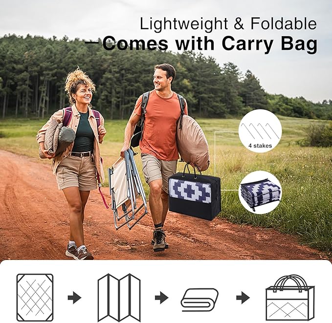 - Lightweight & Portable: Designed for ultimate portability, this lightweight camping rug is easy to fold and carry, making it the perfect companion for camping, picnics, and other outdoor adventures. Take it along to your next outdoor event without the hassle of heavy or bulky mats.
