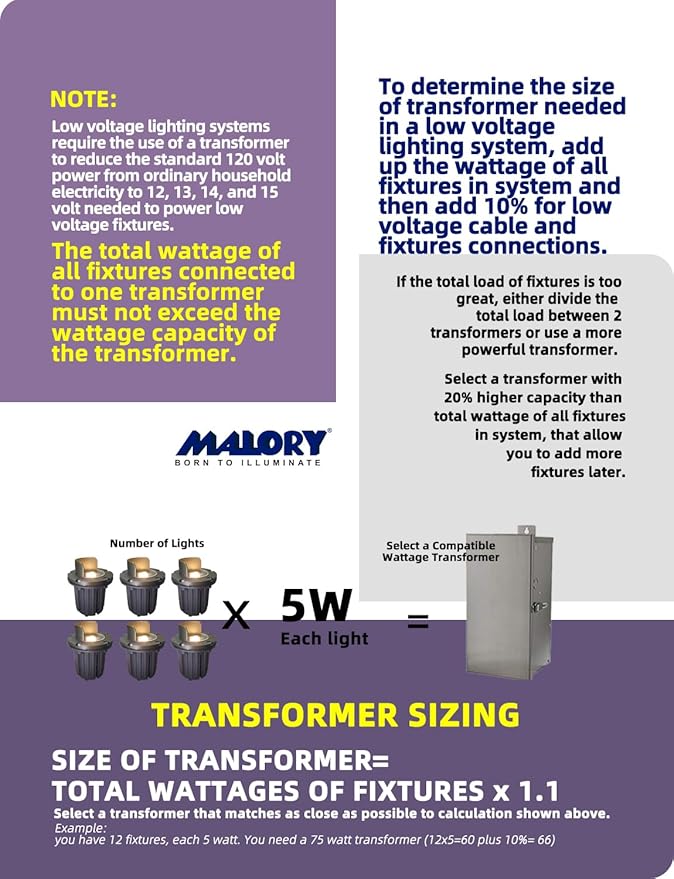 - LIFETIME WARRANTY:MALORY landscape lighting are built to the highest standards of construction and performance, we extends an industry-best lifetime warranty on its brass fixtures and 50,000 hrs for the LED bulbs.Please contact us if you have any issue, we will offer top rated customer service for you.