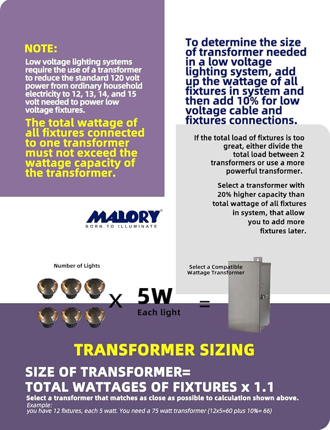 - LIFETIME WARRANTY:MALORY landscape lighting are built to the highest standards of construction and performance, we extends an industry-best lifetime warranty on its brass fixtures and 50,000 hrs for the LED bulbs.Please contact us if you have any issue, we will offer top rated customer service for you.
