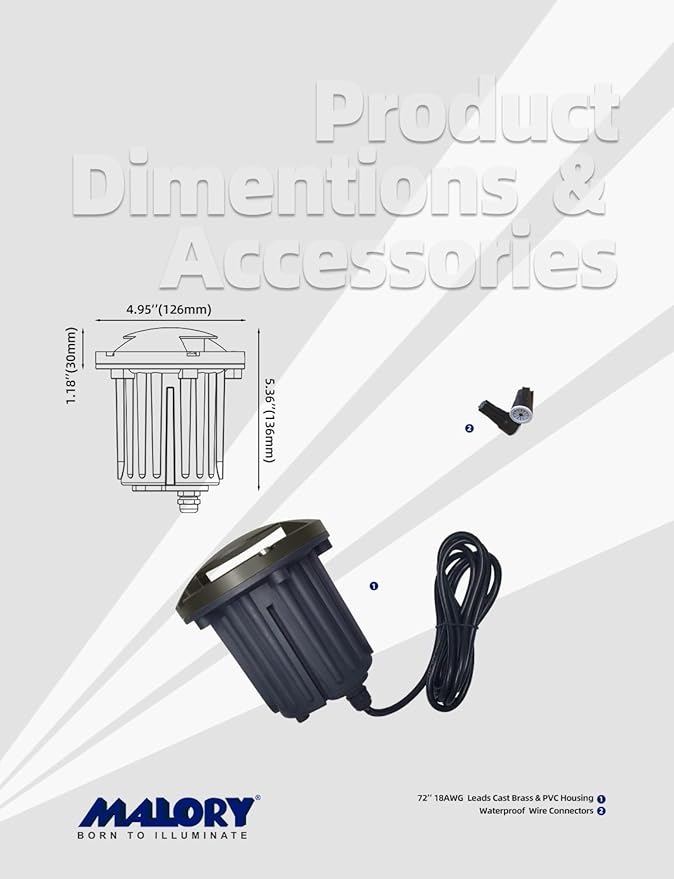- LIFETIME WARRANTY:MALORY landscape lighting are built to the highest standards of construction and performance, we extends an industry-best lifetime warranty on its brass fixtures and 50,000 hrs for the LED bulbs.Please contact us if you have any issue, we will offer top rated customer service for you.