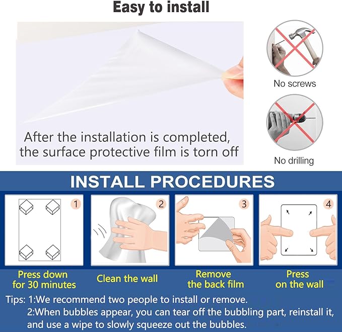 - 【VERY EASY TO CUT & INSTALL】This magnetic whiteboard is made of a backing paper printed with grid lines for guiding straight cuts, You can cut it at any shape, Then just simply peel and stick, And no drilling is required, Turn any smooth and non-texture surface into a large magnet receptive board.
