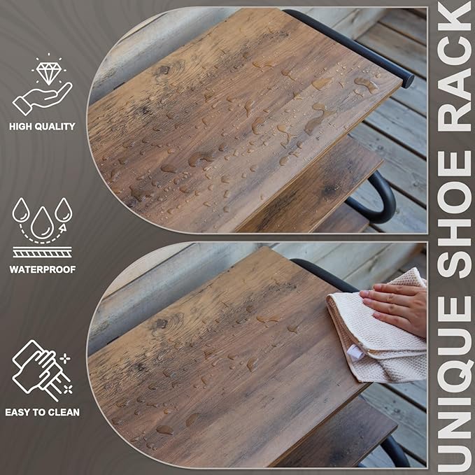 - Sturdy Wooden Shoe Shelf: Made from the durable iron Metal frame and thick wood top board, ensuring this shoe rack can load much heavier duty and more durable while using, the wooden shoe shelf is waterproof and not easy to crack and deform.
