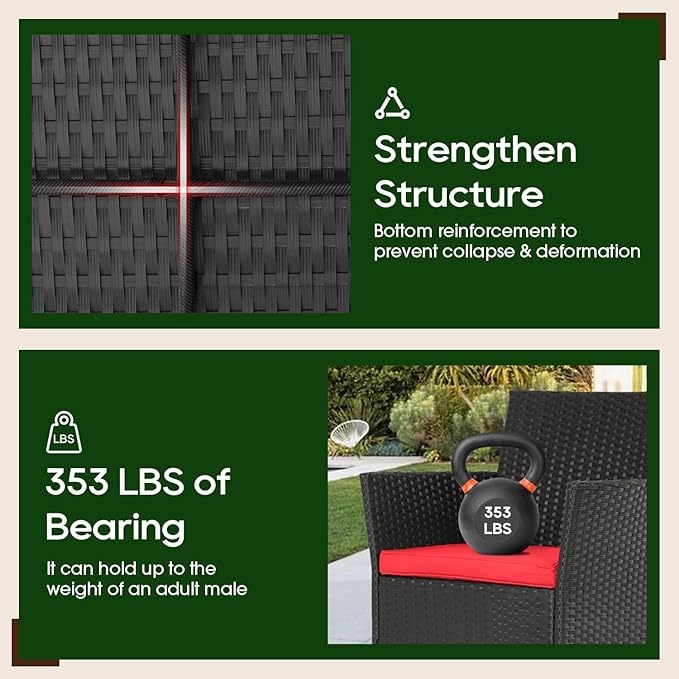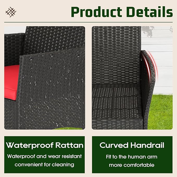 - SPACE-SAVING & VERSATILE: This patio conversation set fits small patios, balconies, and gardens. Compact and practical, this design saves space while providing easy storage for outdoor essentials.