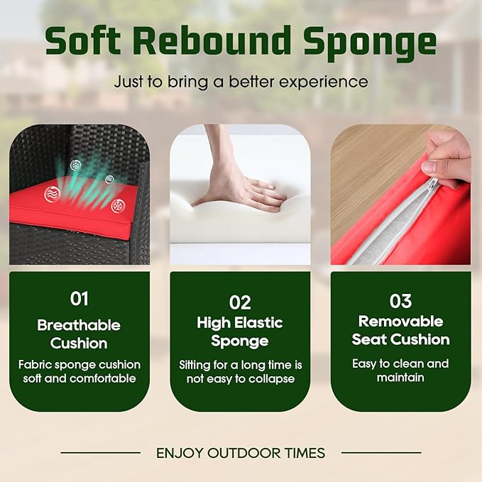 - COMFORTABLE & STYLISH DESIGN: This patio set has thick, high-density rebound sponge cushions for cozy seating. Its simple, stylish look suits patios, balconies, poolside, or gardens.