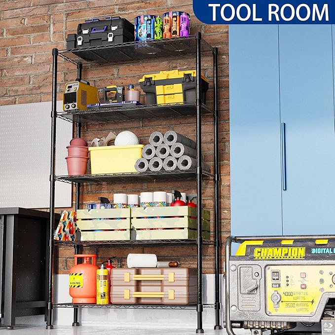 REGILLER 5-Wire Shelving Metal Storage Rack Adjustable Shelves,Standing Storage Shelf Units for Laundry Bathroom Kitchen Pantry Closet(Black,14.1" D x 36.1" W x 71.5" H)