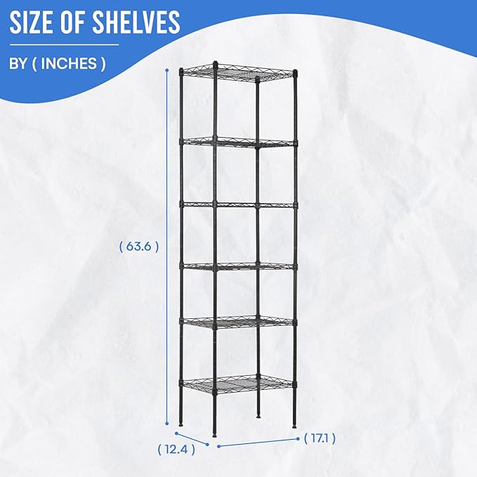 PayLessHere 6-Tier Adjustable Metal Storage Shelves - Max Load Capacity 600 lbs - Easy Assembly - 12" W x 17" D x 64" H NSF Certified - Versatile for Various Uses,Black