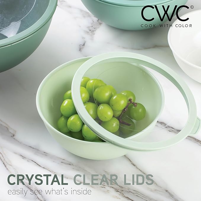 COOK WITH COLOR Mixing Bowls with Non Slip Bottom - 12 Piece Plastic Nesting Bowls Set includes 6 Prep Bowls and 6 Tritan Lids - Microwave Safe (Sage)