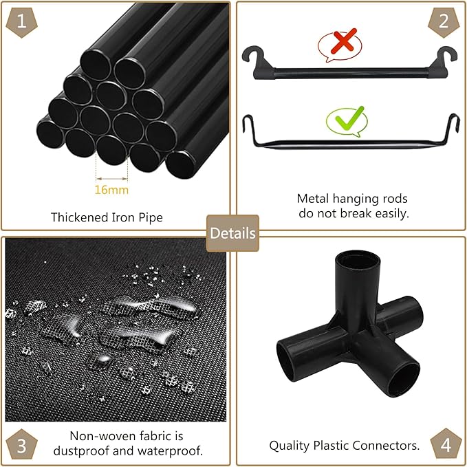 - 【Metal Frame,High Bearing Capacity】Thickened iron pipe, strengthened plastic connector, greatly improve the bearing capacity of the wardrobe, please rest assured to use.
