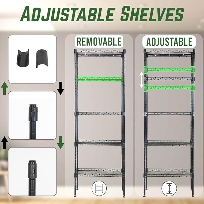 PayLessHere 5-Tier Adjustable Wire Shelf 12" W x 17" D x 48" H Max Load 750 lbs, Easy Assembly, Versatile Storage Solution, Durable and Stable for Home and Office,Black
