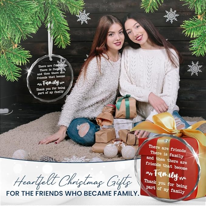 Christmas Friend Gifts for Women Men - Glass Christmas Ornaments for Tree Decorations - Friends Birthday Gifts for Women BFF Bestie, Unique Stocking Stuffers Gift Ideas for Xmas Decorations