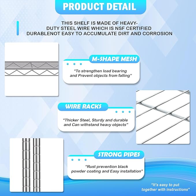 - 5.**Easy Assembly:** Assembly is a breeze with clear instructions and minimal hardware for our shelves. No need for complicated tools or extensive DIY skills; you can have this shelf set up quickly and effortlessly. Enjoy the convenience of hassle-free assembly and start organizing your space in no time with this metal shelving.
