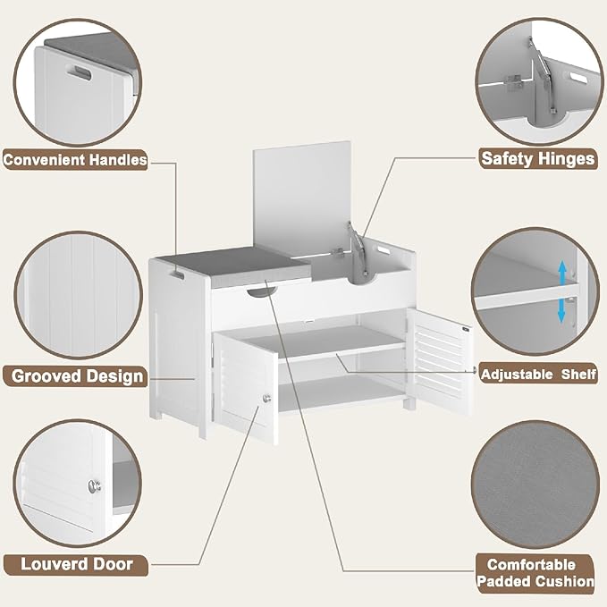 - 【Louvre Cabinet Door】The louvre cabinet door design prevents dust from entering ensures air circulation inside the shoe storage bench and prevents odors