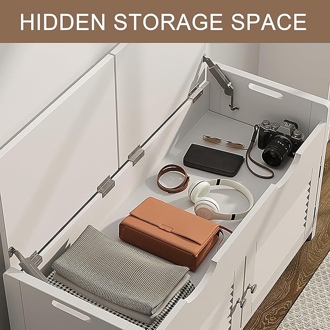 - 【2 Lift Tops & 2 Hovering Support Rods 】When you lift the top of the bench, the hidden storage is spacious enough to store keys, wallets, and more. Our shoe cabinet also comes with 2 additional support rods that support hovering, preventing any accidental lid closures