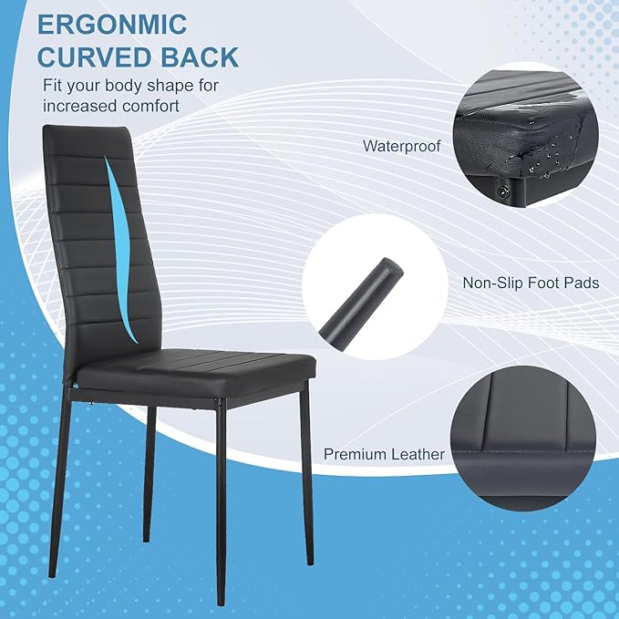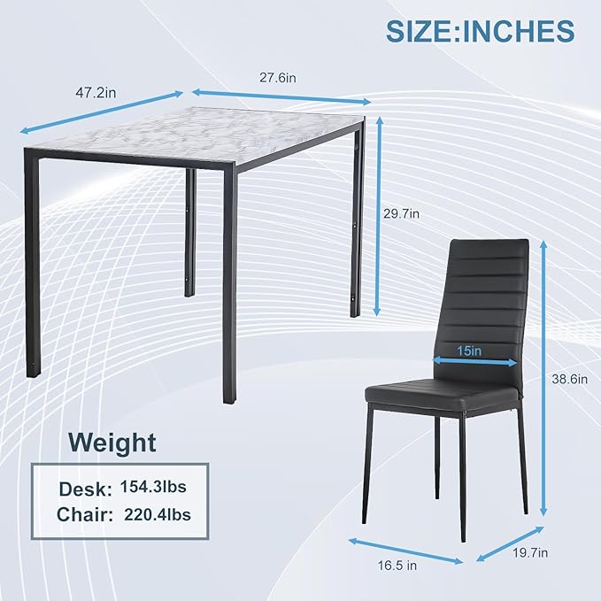 - Upgraded Upholstered Cushion: The dining table set consists of one table and four cushioned dining chairs, featuring contemporary faux leather upholstery that adds comfort to your dining room.