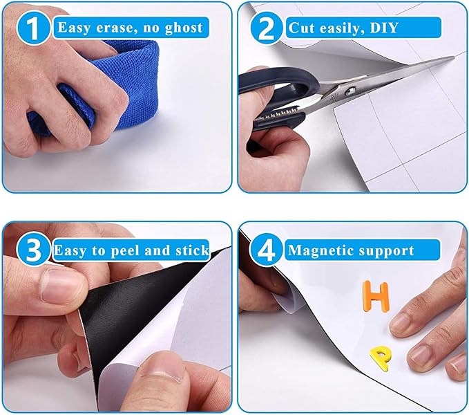 - 【EASY TO CLEAN】: Qiytecno magnetic whiteboard contact paper has a smooth surface that effortlessly erases any text or markings, providing a great writing experience. Even if you have written on it for 30 days, you only need to use a dry cloth or an eraser to wipe the magnetic whiteboard, leaving no ghost, no need to use cumbersome spray or cleaner. Even if you wipe it for tens of thousands of times, the magnetic whiteboard is still as smooth and clean as a mirror, leaving no residue or stains.