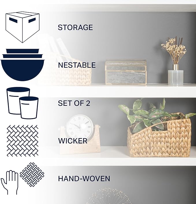 happimess BSK1007A-2SET Havanah Southwestern Hand-Woven Hyacinth Slanted Nesting Wicker Baskets with Handles, Seagrass Container for Decoration in Living Room, Bedroom, Closet, Natural (Set of 2)