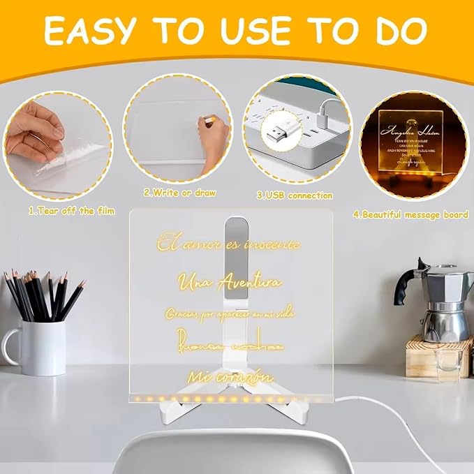 - 【Romantic atmosphere】Make your messages shine with our innovative LED strip-embedded base. With just a touch of a button, the acrylic board illuminates with a romantic and warm glow
