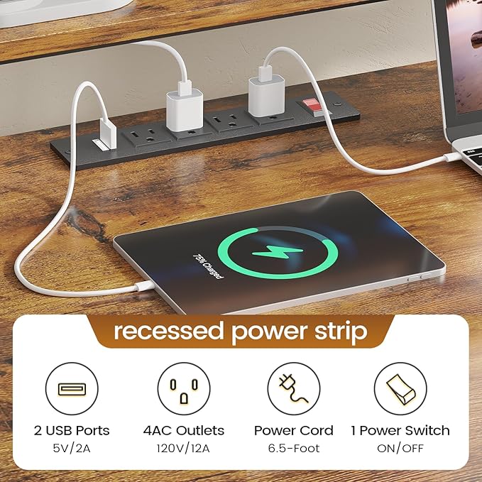 - 【For Health】The monitor shelf conforms to the ergonomic structure, which effectively reduces the pressure on the back and neck, so that you don't need to worry too much about health problems when you were working. At the same time, a headset hook is provided on the side, so that the headset is at your hand, and you don't need to worry about finding headphones for playing games.Our charging station includes 4-Outlet & 2 USB Ports to provide power for up to 6 devices simultaneously.