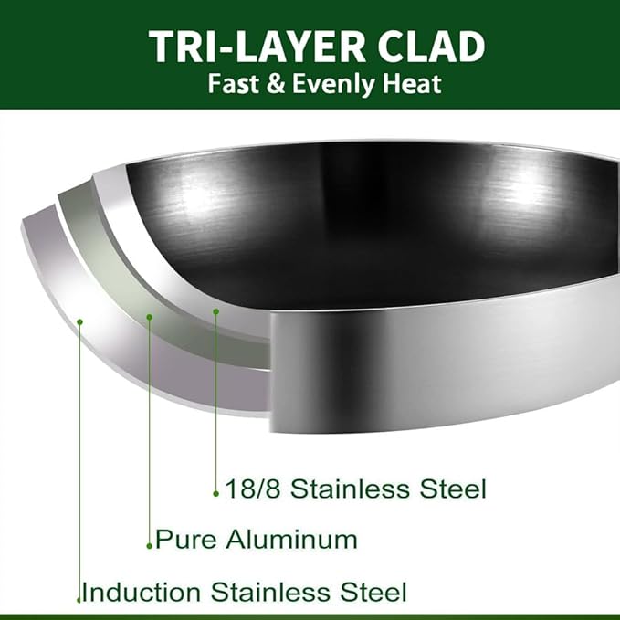 - 【Healthy Nonstick Stainless Steel】: The non stick fry pan is made wih 3-ply construction and teflon coating. It's free of PFAS, PFOA, lead, and cadmium. So it will never release toxic fumes, even if it's accidentally overheated.