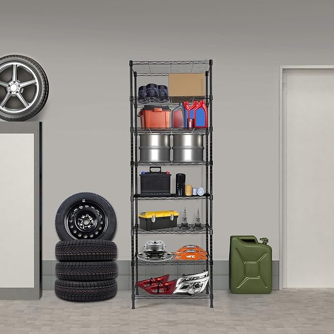 REGILLER 8-Wire Shelving Metal Storage Rack Adjustable Shelves,Standing Storage Shelf Units for Laundry Bathroom Kitchen Pantry Closet(Black,13.9" D x 23.9" W x 72.1" H)