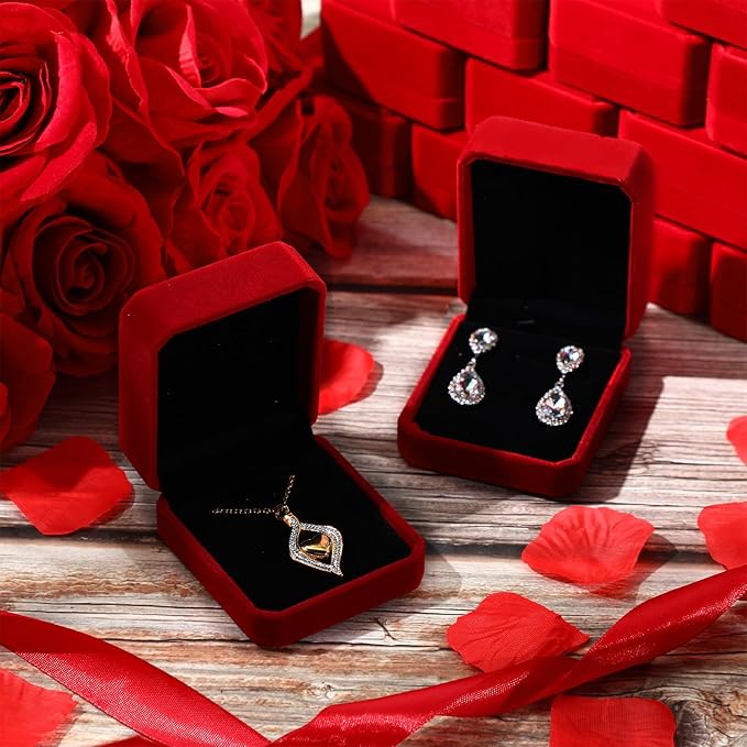 Sureio 24 Pcs Velvet Necklace Ring Boxes Bulk Earring Pendant Jewelry Gift Display Case for Proposal Anniversary Wedding Engagement Birthday Gift(Wine Red)