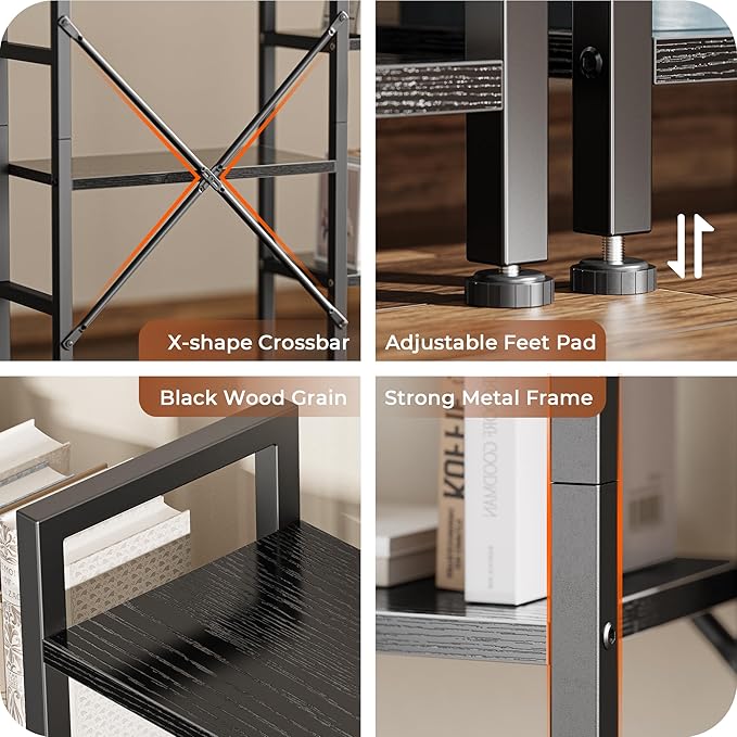 - 【STABLE AND DURABLE】Crafted from steel frame and particle board, this wide bookshelf has high stability and long service life, each shelf can hold up to 70 lbs.The bookshelves come with anti-tilt brackets so you can fasten them to the wall for support.