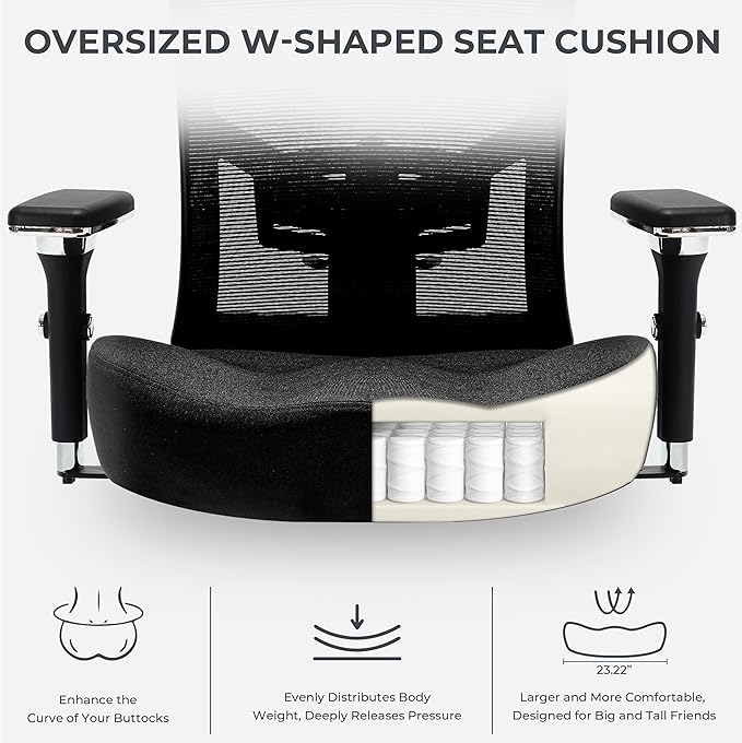 - 🐋 [𝖮𝗏𝖾𝗋𝗌𝗂𝗓𝖾𝖽 𝖶-𝗌𝗁𝖺𝗉𝖾𝖽 𝖲𝖾𝖺𝗍 𝖢𝗎𝗌𝗁𝗂𝗈𝗇] Larger and more comfortable — Designed for big and tall friends, it can hold up to 500 pounds. Featuring an oversized W-shaped seat cushion (5.1 Inches Thicker), it helps lift and contour the buttocks, evenly distributes body weight, deeply releases pressure. If you're in a heartbeat, click add to cart now and you will have the perfect sturdy chair designed just for you!