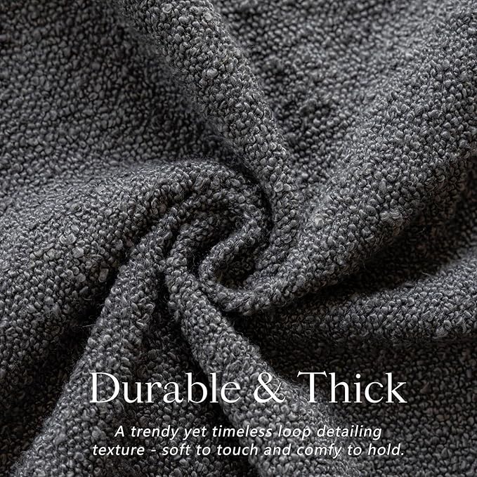 Foindtower Pack of 2, Decorative Textured Boucle Throw Pillow Covers Accent Solid Pillow Cases Cozy Soft Couch Cushion Case for Chair Sofa Bedroom Living Room Home Decor 22 x 22 Inch Dark Grey