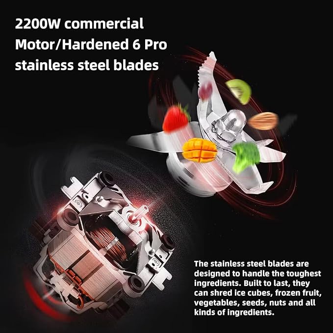 - 2200W Powerful Motor and 6 Blades : Our BioloMix Pprofessional Blender the powerful 2200 W Blenders For Kitchen with up to 32000 RPM can break the cell walls of both soft and hard ingredients in seconds. The upgraded 6 lengthened sharp blades makes blending range wider and more efficient
