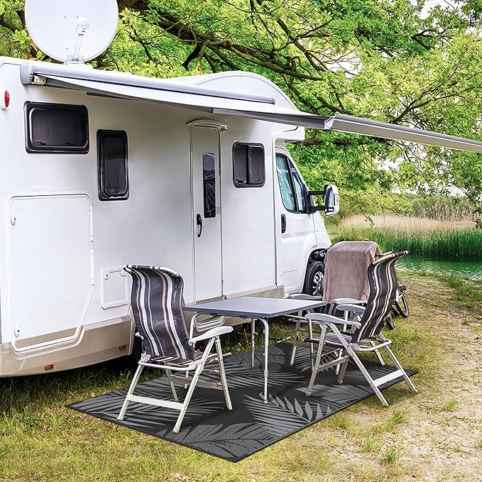 - Perfect Choice For RV Camping: Woven from lightweight plastic straws, these RV outdoor rugs fold compactly to fit in the included carry bag. This portable waterproof outdoor rug is easy to carry, with 4 corner loops and stakes to secure it. Using this camper rug reduces travel fatigue and adds plenty of space for fun — also a stylish touch for fall decor when setting up your campsite