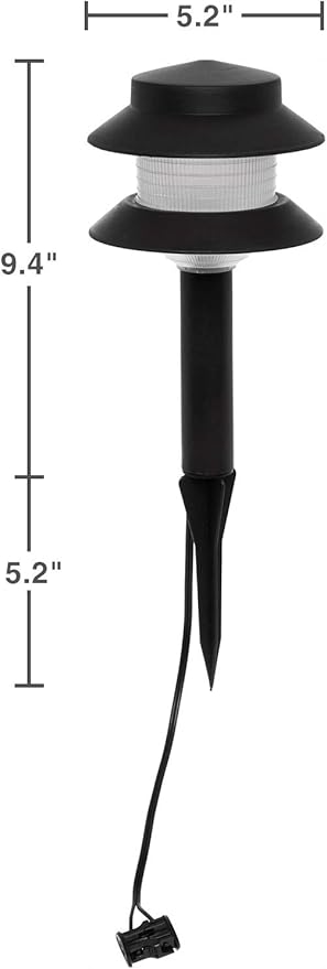 - Pathlight measures 5.2"L x 5.2"W x 14.46"H. Color temperature CCT (K): 2800-3200K. Connectors are included and attached to the pathway lights in the base of the lights. The product also includes the power cord. Timer is not included in product packaging