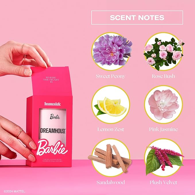 Homesick Scented Candles for Home (Barbie Dreamhouse) - 13.75 oz Long-Lasting Soy Wax Blend Jar Candle Gifts for Women for All Occasions, 60-80 Hours Burn Time - Notes of Lemon, Rose & Sandalwood