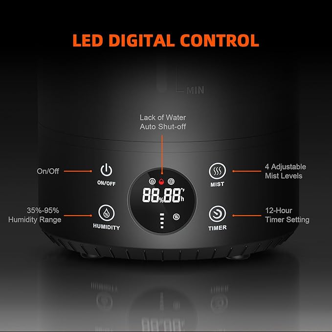 - ๐๐๐ ๐๐ข๐ฆ๐๐ซ ๐๐ฎ๐ฆ๐ข๐๐ข๐๐ข๐๐ซ ๐๐จ๐ซ ๐๐๐ซ๐ ๐ ๐๐จ๐จ๐ฆ: This humidifier with hose has a timer that is timed in 1-hour increments 1 to 12 hours, the 6L indoor humidifier tank can last up to 24 hours, and 450 ml/h max mist output can cover rooms and grow tents, highly recommended for office, bedroom, home, basement.