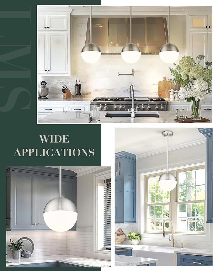 LMS Farmhouse Pendant Light Fixtures, Brushed Nickel Pendant Light with Globe Glass, Adjustable Hanging Lighting for Kitchen Island, Bedroom, Bathroom, LMS-203