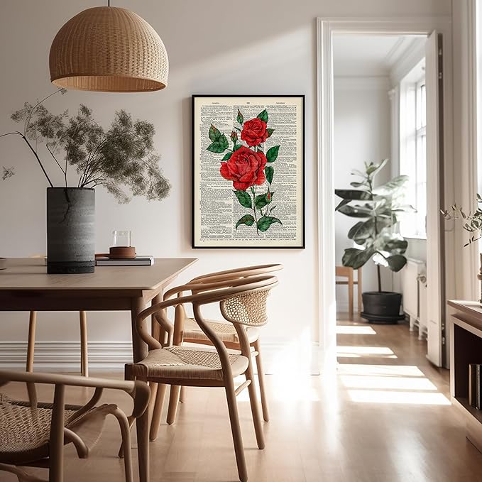 Poster Master Dictionary Art Poster - Red Roses Print - Flower Art - Floral Art - Gift for Men, Women & Florist - Minimal Decor for Living Room, Bedroom, Dorm or Flower Shop - 16x20 UNFRAMED Wall Art
